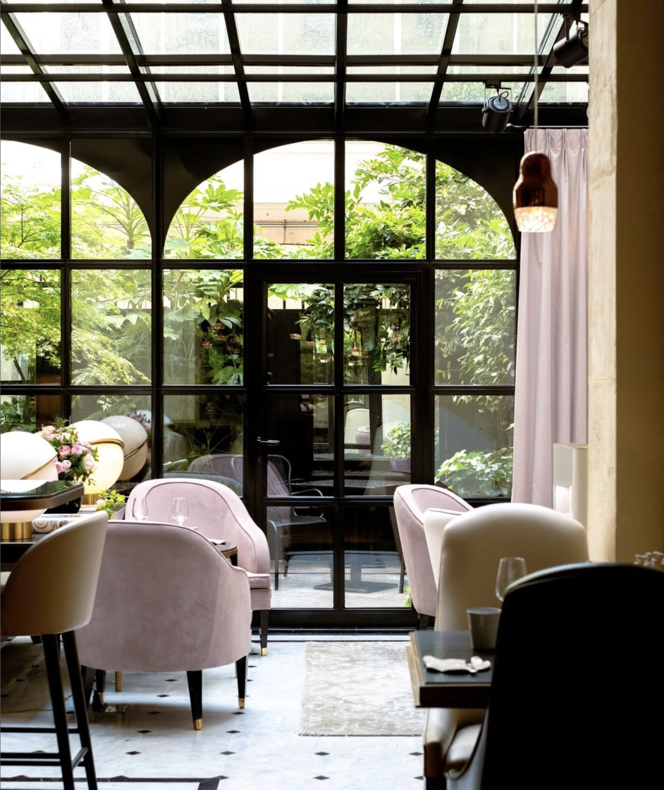 Derrière les élégantes façades parisiennes, la terrasse de l’Hôtel du Narcisse Blanc se révèle tel un secret bien gardé, un havre de sérénité dissimulé au cœur du 7èm arrondissement. À l’abri des regards et du tumulte de la ville, cet écrin verdoyant imaginé par Sébastien Habert offre à la clientèle du restaurant Cléo un refuge d’élégance et de quiétude.